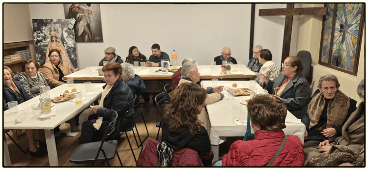 Organizado y coordinado por el Grupo de la Esperanza de la Parroquia, el pasado sábado 14 de febrero, con motivo del Encuentro del Día del Mayor y encuadrado en la celebración de la Jornada Mundial del Enfermo. Primero participamos en una eucaristía, donde rezamos por los enfermos y sus familias. Después, compartimos mesa y charla en una amena merienda con todos los mayores asistentes. Fue una tarde sencilla y llena de cercanía, en la que disfrutamos de la compañía y el cariño de todos.