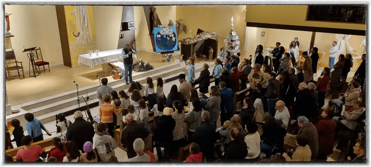 Una celebración llena de alegría y fe. La tarde se animo con el juego de la ruleta de la fortuna con mensajes inspirados en la Natividad del Señor, los cuales tuvimos que adivinar. Disfrutamos de villancicos interpretados por los distintos grupos parroquiales y cerramos con una fraterna chocolatada final para compartir en comunidad.
