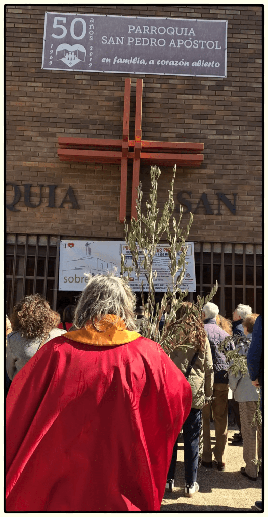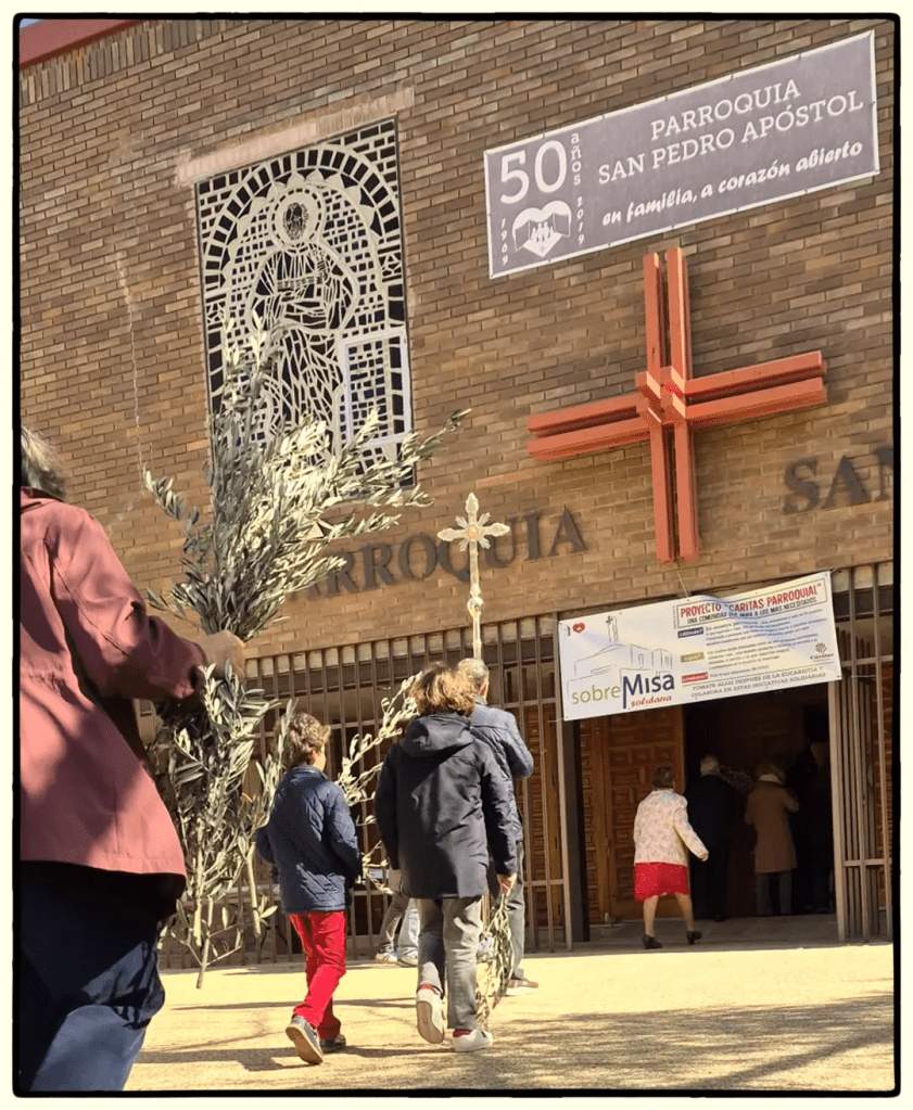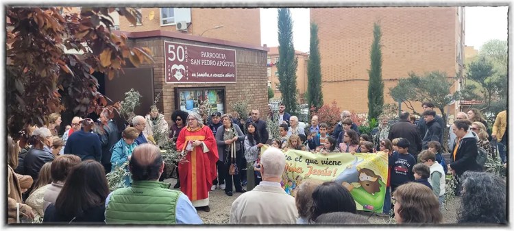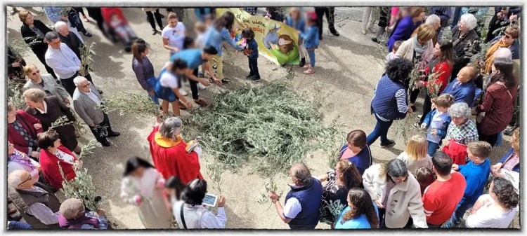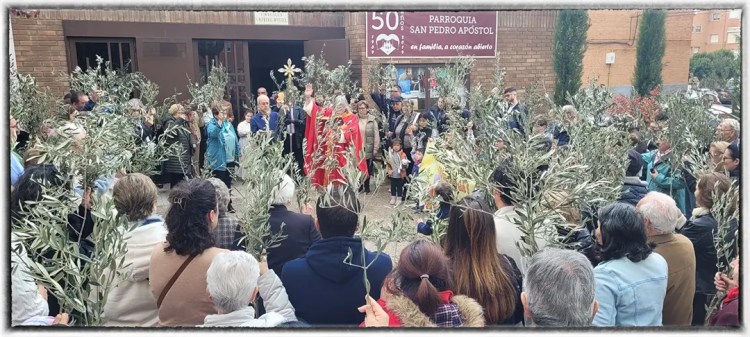 La mañana comenzó con la bendición de los ramos a la entrada de la iglesia, seguidamente se llevó a cabo una procesión por las calles del barrio. Entre canticos llegamos de nuevo a la parroquia donde se celebró la Eucaristía.En ella se leyó el evangelio de San Marcos “Pasión y muerte de Jesús”.Para terminar la mañana se celebró la SobreMisa solidaria en un gran ambiente festivo.