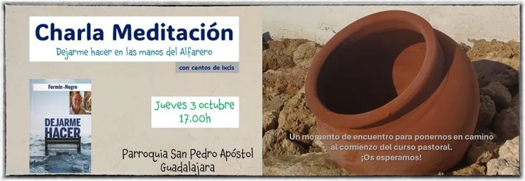 El pasado jueves 3 de octubre, tuvo lugar en nuestra parroquia la charla-meditación “Déjame hacer en las manos del alfarero”. Esta fue dirigida por Fermín Negre. La charla fue complementada con la música del grupo Ixcís..